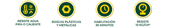 ATENCIÓN: En roscas plásticas el producto se aplica solo, en roscas metálicas es necesario colocar hebras de cáñamo encima del producto.